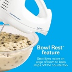 Bowl Rest feature. Frees your hands by stabilizing the mixer on the edge of the bowl when the mixer is not in use, so drips end up in the bowl and not on your countertop.
