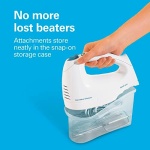 No more lost beaters. The storage case easily snaps onto the hand mixer. The case holds the included attachments to prevent lost beaters and reduce kitchen clutter.