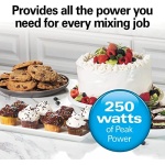 250 watts of peak power. This Hamilton Beach hand mixer provides all the power you need for every mixing job, whether you’re adding nuts and chocolate chips to cookie dough or making fluffy whipped cream.