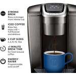 The Keurig K-Elite single serve brewer blends a premium Brushed Slate finish and programmable features to deliver both modern design and the ultimate in beverage customization. With a striking brushed finish and metal details, it’s a stylish addition to any kitchen. The Keurig K-Elite single serve coffee maker features Strong Brew for when you want to brew a bolder cup of coffee, and an Iced button to brew hot over ice for a refreshing, full-flavored iced coffee. It features five brew sizes, so you can brew your favorite coffee, tea, hot cocoa, or iced beverage at the touch of a button. Choose from hundreds of delicious varieties of K-Cup pods, or brew your own ground coffee using the Universal My K-Cup Reusable Coffee Filter (sold separately). The K-Elite brewer offers programmable features like auto on and temperature control, as well as providing hot water on demand for instant soups and oatmeal, and the large 75oz removable water reservoir lets you brew 8 cups between refills.