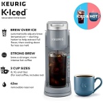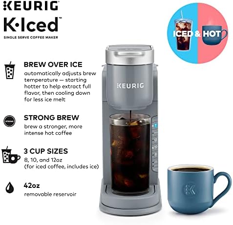 The Keurig® K-Iced™ coffee maker. Enjoy refreshingly delicious iced coffee and full-flavored hot coffee from one multitalented coffee maker. Brew the perfect coffee for any craving, mood, or mouthwatering moment. Always easy, always right. It’s all in the blue Brew Over Ice button. One push, and the K-Iced™ coffee maker automatically adjusts the brew temperature, starting hotter to extract full flavor, then cooling down to minimize ice melt. All for a vibrant, balanced iced coffee that never tastes watered down. The K-Iced™ coffee maker also brews the same full-flavored hot coffee that you love. And if you want a stronger cup, the Strong Brew setting gives your hot coffee a bolder, more intense taste. Whether you’re brewing iced or hot, choose from 3 cup sizes — 8, 10, and 12oz (for iced coffee, including ice). And the 42oz removable reservoir lets you enjoy multiple deliciously refreshing cups between refills.