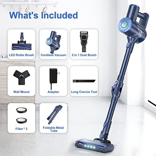 🏠【FLEXIBLE LED BRUSH & MULTIFUNCTIONAL USE】: Bagless vacuum cleaner’s 90+180° flexible stick brush with strong LED headlights can easily adjust the angle to clean particles and dust in dark places. Carpet vacuum cleaner with a 1.2L large-capacity dust container and One-Click Dust Release, this vacuum cleaner pet makes cleaning easier than ever. NOTE: after washing the dust cup and cotton filters, please make sure they are thoroughly dry before use again.
