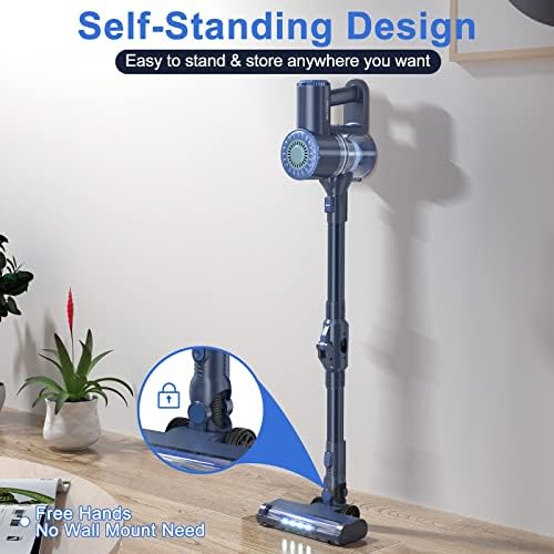🏡【SELF-STANDING & BENDABLE WAND】: The cordless stick vacuum cleaner comes with a Self-Standing design, allowing you to place wireless vacuum cleaner anywhere you want. Vacuum cleaner wireless’s 180° Bendable Wand helps you clean those dead corners under the cabinet, bed, or any other hard-to-reach areas without bending over.