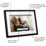 Simple and Durable Design. Enjoy the gorgeous 10 inch color touch-screen electronic picture frame display with 1280×800 resolution when uploading and sharing photos with loved ones. Storage is cloud-based, no need for SD card.
