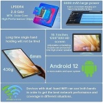 【8GB(4+4)RAM+ 64GB ROM+512GB Expand】The Android 12 tablet PC built-in a powerful storage combination of 8GB RAM(4GB+4GB achieved through expansion technology) and 64GB ROM, comes with new generation ultra-high performance and low power consumption 2.0GHz CPU, achieve faster and more stable running and storage speeds. In addition, it can be expanded up to 512GB with a microSD card (card not included) for even more storage.